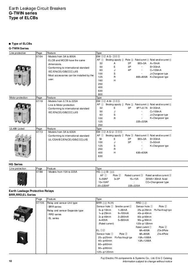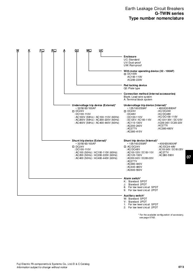 07/2 Fuji Electric FA components & Systems Co., Ltd./D & C Catalog Information subject to change without notice Type number nomenclature Earth Leakage Circuit Breakers ... Fetch Content