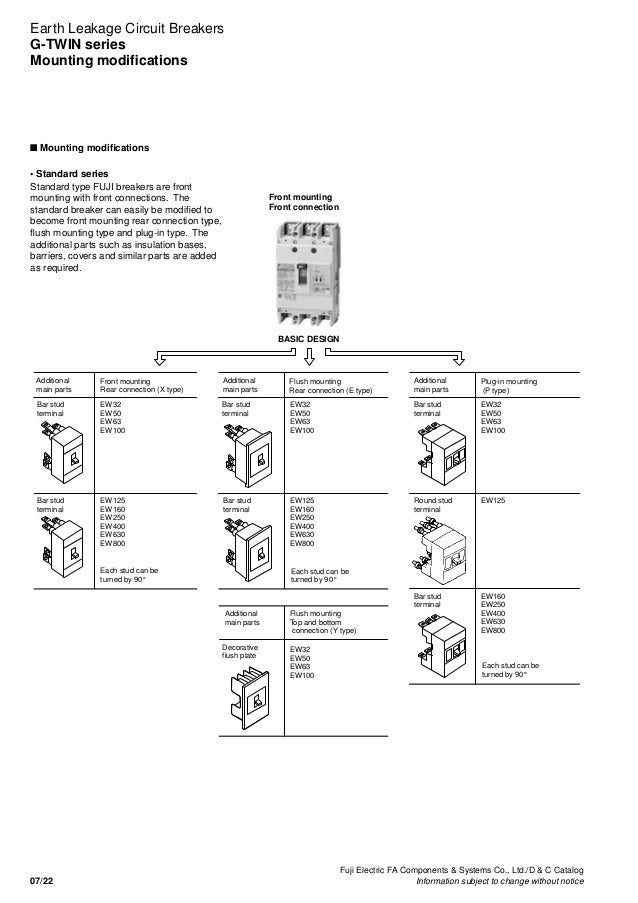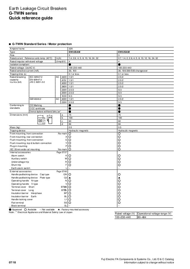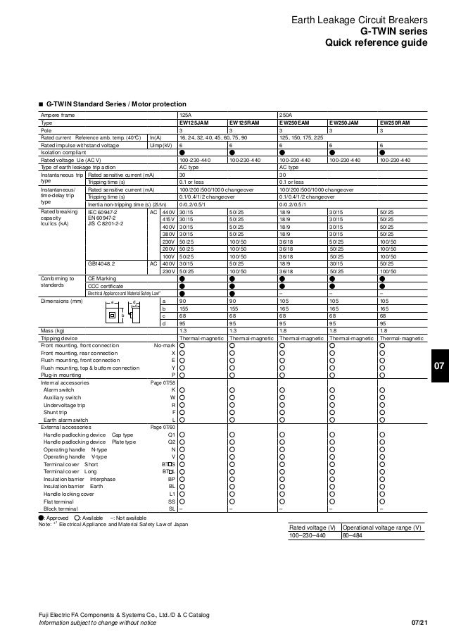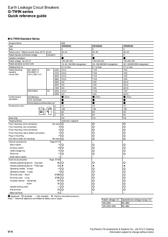 Molded case circuite breaker / Earth leakage circuite breaker G-TWIN Series Downsized, modular and multi-standard Breakers Catalog Disclaimer to Fuji Electric FA within thirty (30) days of discovery by purchaser. Such notice should be submitted in writing to Fuji ... View This Document