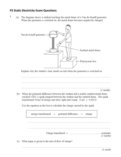 Static Electricity Quiz Next to each of the following diagrams indicate whether the two objects will exhibit REPULSION, ATTRACTION or NOTHING: (6 marks) Matching (6 marks) ... Access Content